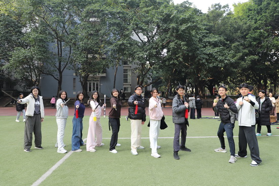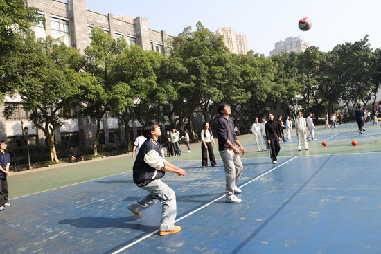 在实验楼、科学馆,同学们循着科创脉络穿梭其问,沉浸式感受南开浓郁的学术氛围。在国际课程中心Core班读写、Honors班听说课堂上,两国学子以语言为媒,在读写思辨与口语交流中碰撞出思维的火花。在排球场,一场排球友谊赛激战正酣,同学们默契配合,汗水与欢笑交织。在运动场,武术刀剑课程尽显中华武魂,刚劲的招式、灵动的身姿,让“无体育,不南开”的精神在跨文化互动中绽放光彩。