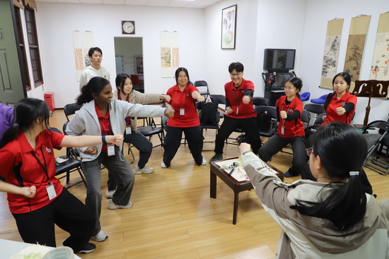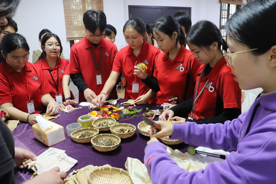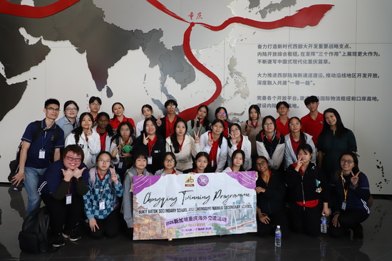 到访期间,武吉巴督中学师生全程沉浸式体验南开校园文化:走进高二课堂随堂听课,深度参与汉服社、岐黄社、读书会等特色社团活动;亲手体验线装书制作非遗技艺,在趣味体育活动中学习打陀螺,感受中国传统民俗与非遗文化的独特魅力;共同参观“渝新欧”中欧班列项目,深入了解项目战略意义,感受重庆作为内陆开放高地联通世界的发展活力。