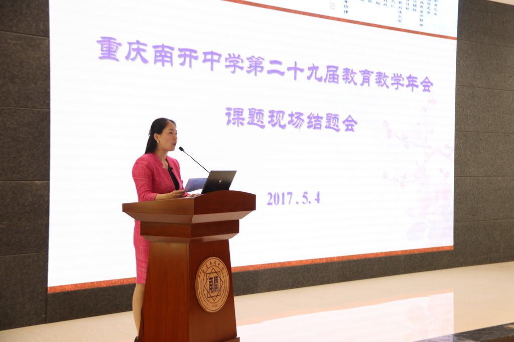 5月4日,“重庆南开中学第29届教育教学年会现场结题会”在科学馆举行。15位来自各课题组的教师代表,首先用7分钟时间对课题研究情况包括选题、研究过程、课题结论、课题成果等进行陈述,然后再用3分钟现场回答评委提问。各课题组成员良好的科研素养、答辩教师现场的精彩应对,充分展示了南开教师的风采,赢得大家的阵阵掌声。
