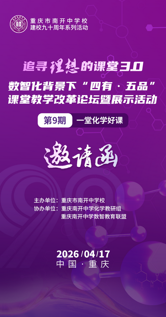 追寻理想的课堂3.0丨4月17日,南开中学邀您共研一堂化学好课,欢迎扫码报名!