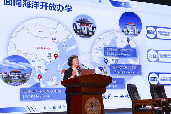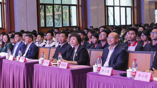 互动结束后,学生代表为三位科学家献上鲜花,以诚挚心意致敬科研路上的引路人。随后,厦门大学外文学院党委书记徐琪教授为同学们介绍美丽厦大,为学子搭建通往高等学府的桥梁,助力南开科学人才培养。