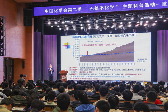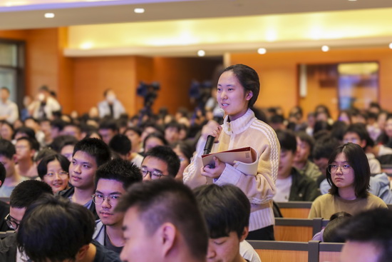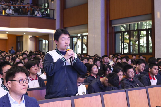 “请问院士,如何平衡基础研究与应用研究的关系?”“新药研发过程中遇到最大的困难是什么,如何坚持下来?”“青年学生想要走上科研道路,现在应该做好哪些准备?”“我国是否有更科学环保的技术将我国相对富余的资源,例如煤炭,转化为我国相对稀缺资源,如石油的替代品?”同学们踊跃举手、积极提问,围绕电化学能源、创新药物研发、金属有机催化、科研成长之路等话题,与三位专家深入交流。
