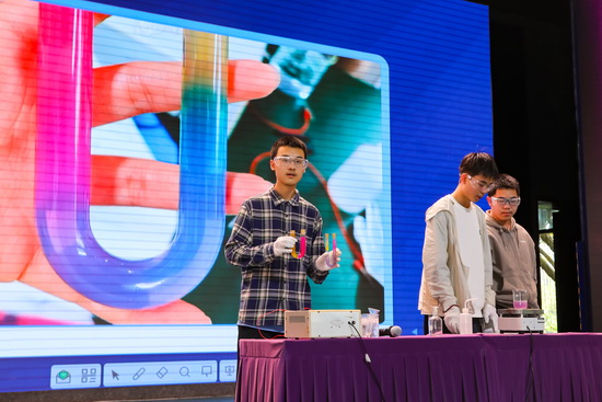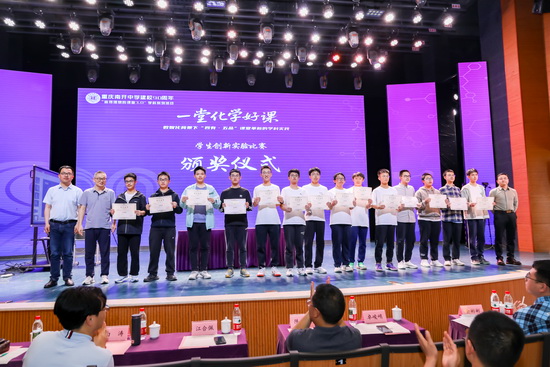 本环节由重庆南开中学化学教研组组长梁贵春主持,开展化学创新实验大赛成果展示。