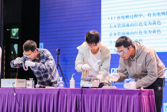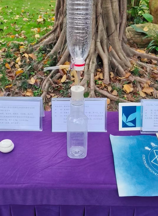 重庆南开中学化学教研组秉持“实验育人”理念,连续十年开展学生创新实验比赛,鼓励学生从疑问出发,以实验为舟,驶向科学创造的深水区。现场展出了多项学生自主设计的创新实验作品,涵盖电化学、晶体生长、天然染料应用、非遗技艺等多个方向,充分体现学生扎实的学科基础与卓越的创新能力。