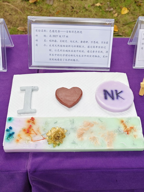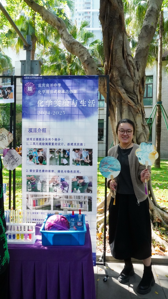 重庆市教育科学院化学教研员钱胜高度评价本次展示。他认为,学生作品不仅体现了扎实的化学学科基础,更融合了多学科知识,充分展现了南开学生深厚的综合素养、严谨的科学态度与探究能力,真正将创新思维融入了实践。