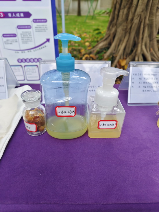 实验名称:色蕴皂香——自制彩色肥皂 班级:高2027届17班 姓名:程斯淼、肖程月、向文杰、唐婧妍、万恩瑞、万岳霖 | 实验名称:制取植物胶水 班级:高2027届3班 姓名:滕绎凡、冯昶齐、米相龙 |