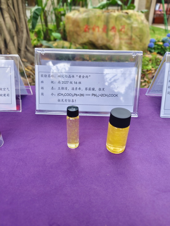 实验名称:碘化铅晶体“黄金雨” 班级:高2027届16班 姓名:王颢潼、潘彦希、蔡获骥、张昊 | 实验名称:教材实验改进——钠与水的反应 班级:高2027届7班 姓名:张馨月、李佳羲、刘力畅、刘一豪、罗一夫、毛玮 |
