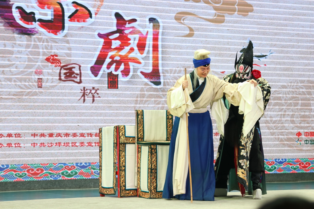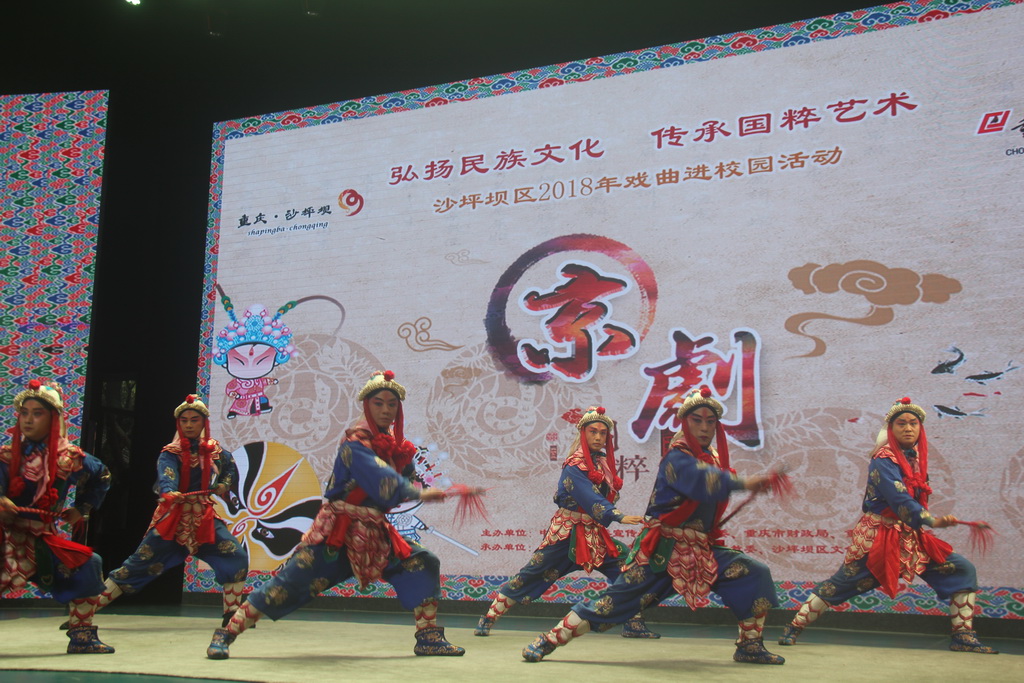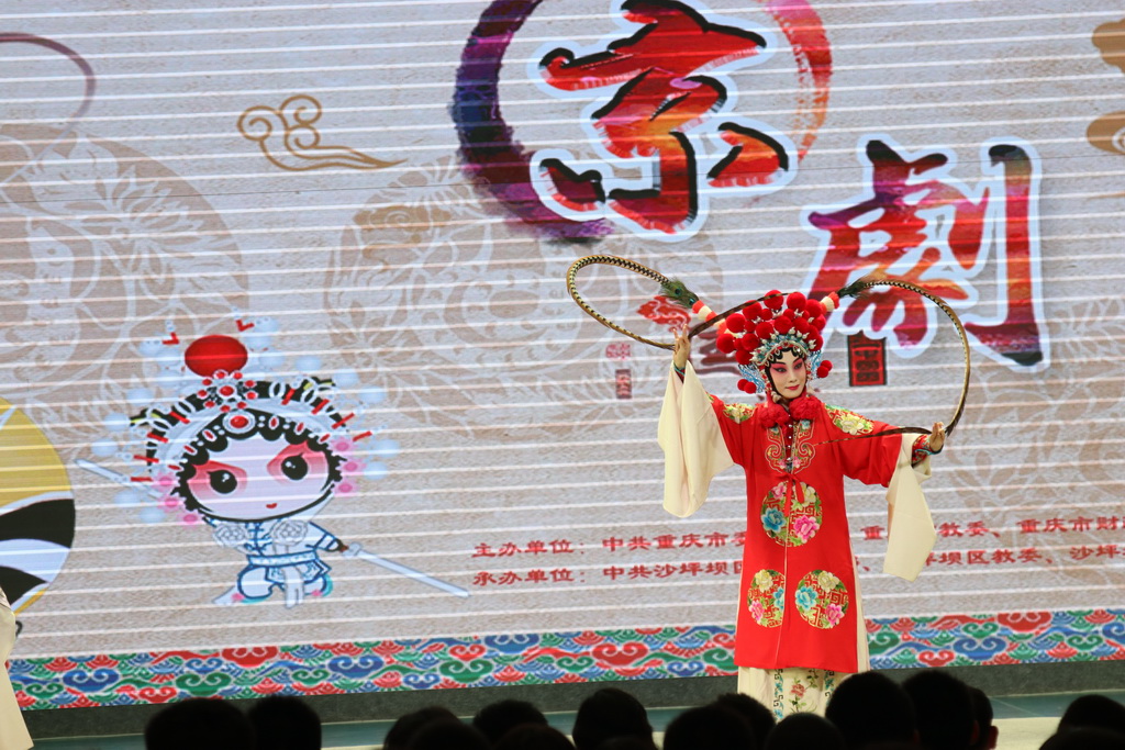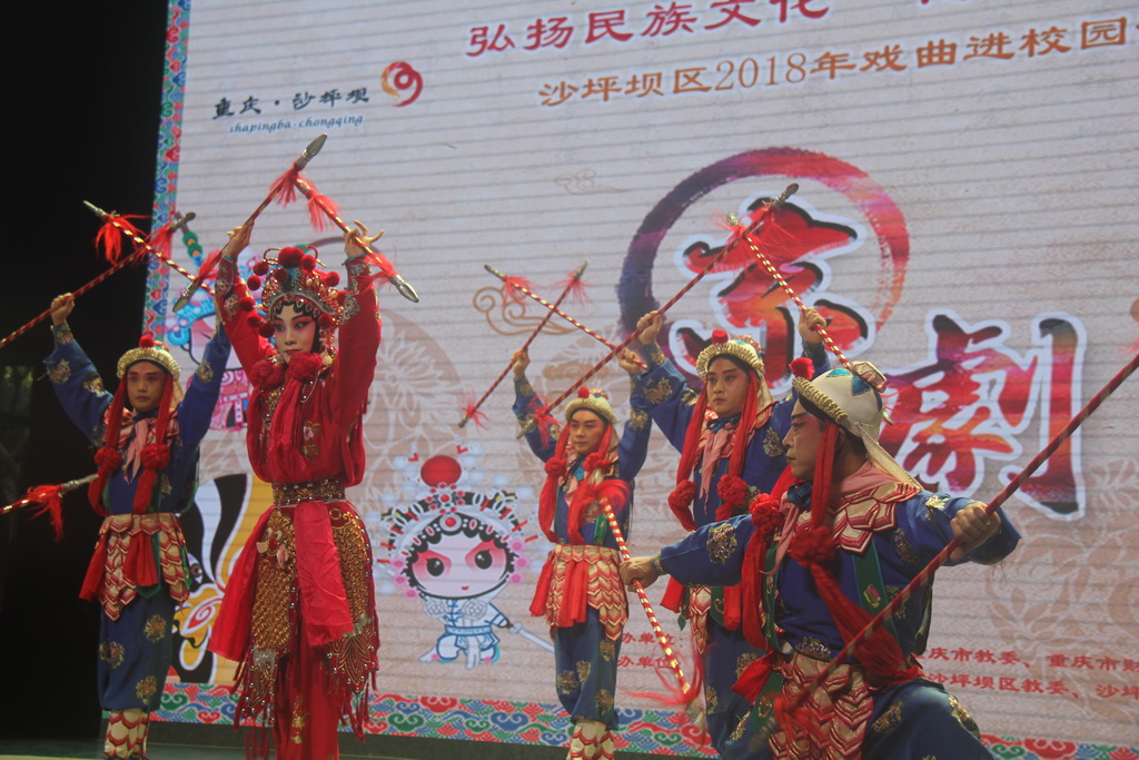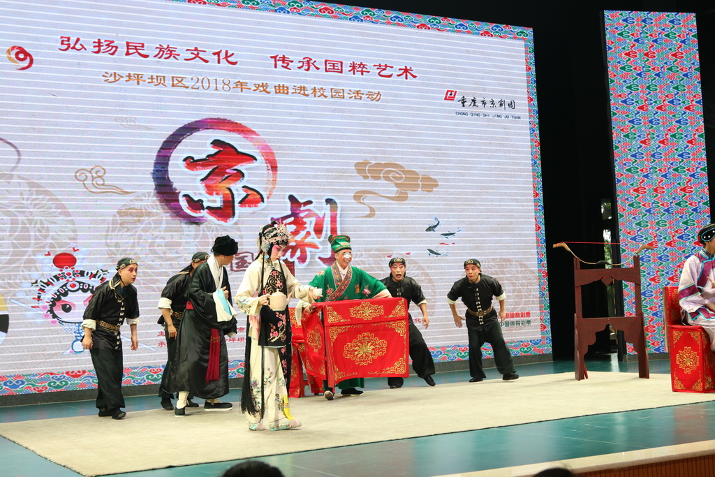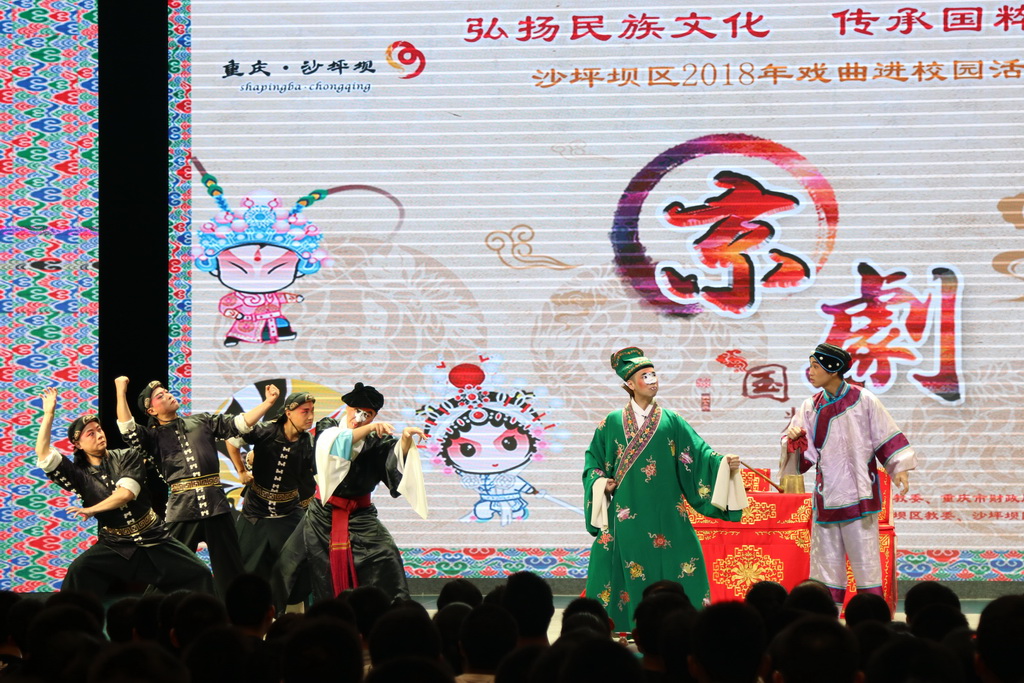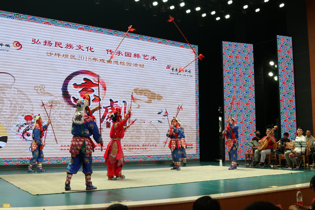 9月19日下午,南开午晴堂内锣鼓喧天,一会是字正腔圆的唱段,一会是插科打诨的逗乐,座无虚席的礼堂内不时爆发出热烈的掌声。这是2018年沙坪坝区“戏剧进校园”的首场演出。