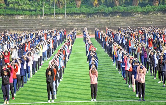 肖主任透露,为了让学生在短时间内尽快学会新版课间操,学校语文组老师还集体进行编词,体育组老师进行编舞,并在其中融合现代元素,让学生在做操时,不仅能达到愉快身心的目的,还能让经典更深入人心。