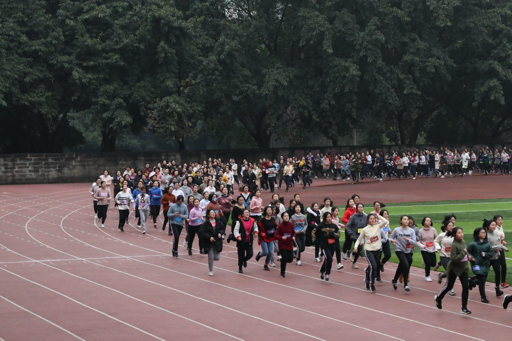 田祥平校长和毛明山副校长为比赛鸣枪发令。随着枪声响起,同学们冲出起跑线,奔跑在跑道上、校园里,大家争先恐后、你追我赶,从出发时的摩拳擦掌到抵达终点时的欢呼雀跃,整个校园被同学们的热情点燃!