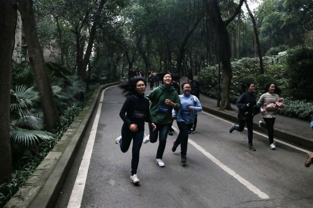环校跑全程接近四千米,赛前在学校保卫科的配合下,清除了沿途的不安全隐患,比赛时保安们着装整齐地站立在各个路口指挥着同学们的行进路线。赛程有平路、阶梯、上下坡,从最初的兴奋到后来的坚持,再到克服各种困难跑完全程拿到记分卡,同学们的心路历程同样曲折,但最终实现了目标则让这个过程充满了意义,大家乐在其中。