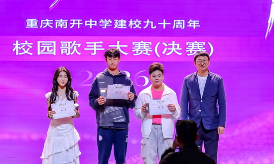 4月2日下午,“音随心动 乐展风华”2026年重庆南开中学校园歌手大赛如期而至,南开师生以歌声为媒、以旋律寄情,将青春热忱谱进音符,把家国情怀融入曲调,用一场饱含艺术温度与精神力量的青春盛会,为南开九十荣光献上最真挚的礼赞。共青团沙坪坝区委书记李力,重庆南开中学副校长张莉花,学校相关部门负责人到场观看并为获奖师生颁奖。