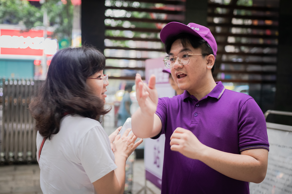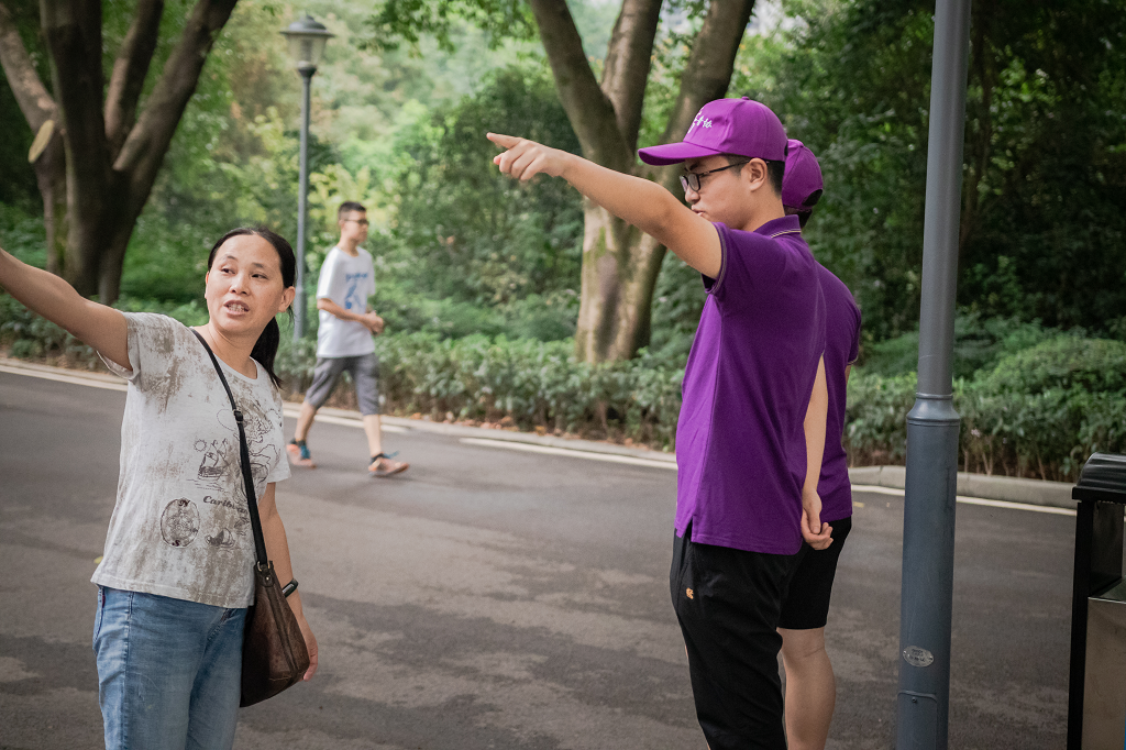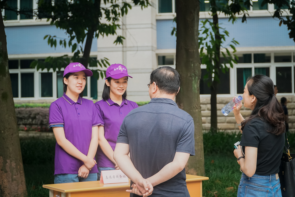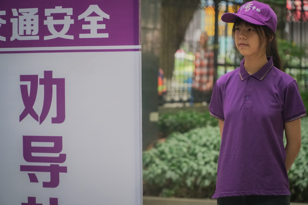 志愿者们也很积极,七点过就来到学校,身着志愿者服装守候在各个路口,针对家长们对于学校的各种好奇,志愿者们也在耐心地解答。