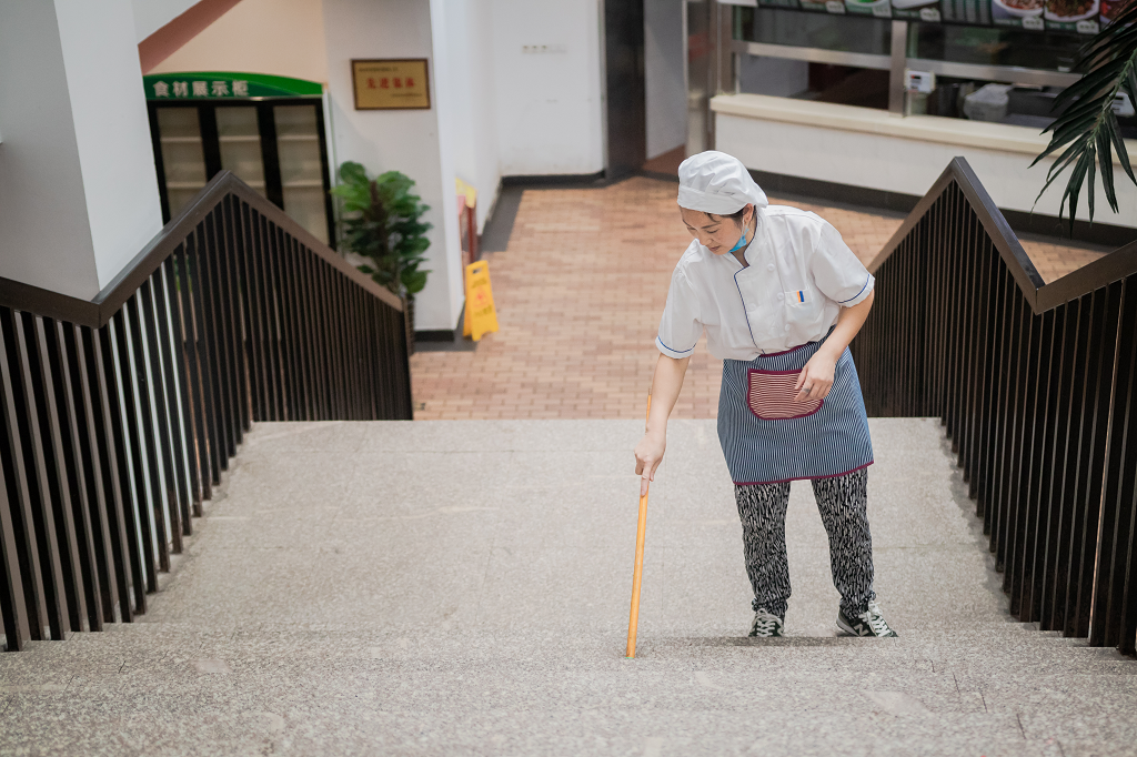 大清早,清洁阿姨就开始工作了,她们一丝不苟地打扫着校园,不忽视任何一个角落。操场、教学楼、宿舍、实验楼……到处都是她们忙碌的身影。作为校园美容师,她们在背后默默付出,只为给新同学一个干净清爽的南开印象。