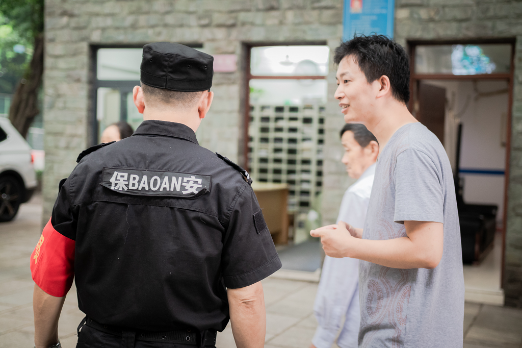 校园里,到处都有保安叔叔的身影,他们着装整齐、精神饱满,耐心地引导家长和同学。他们用严谨认真的态度维护着校园秩序。校园安全由他们守护。